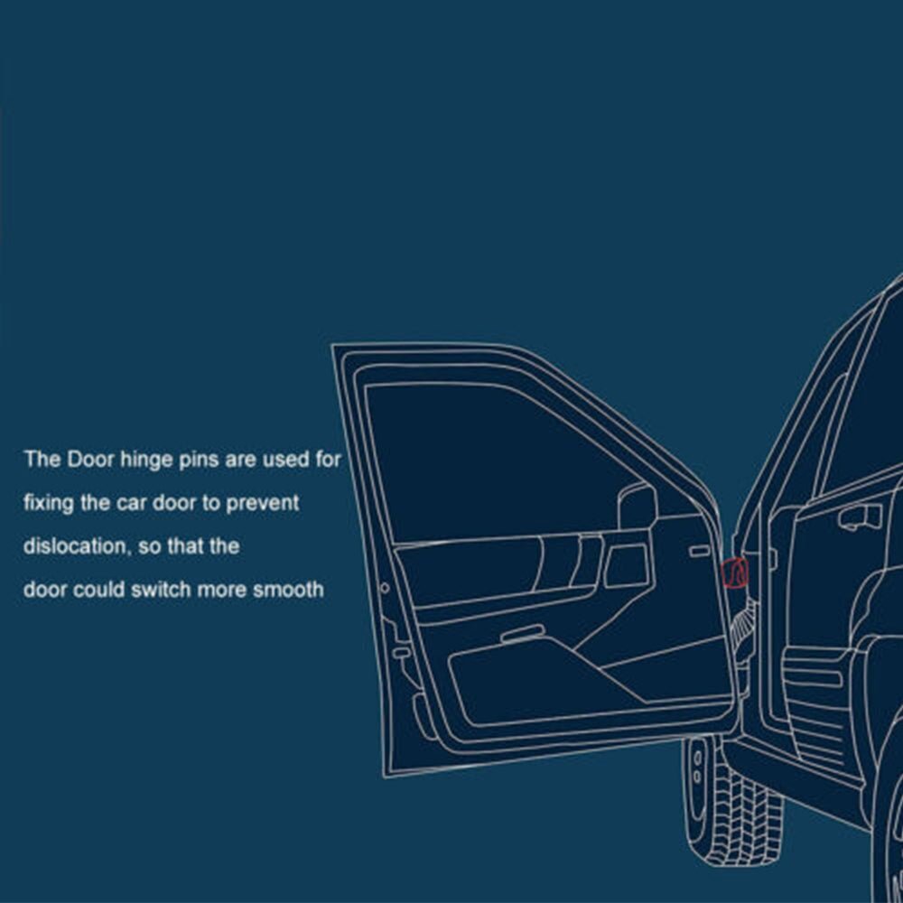 Package includes: 4 Zinc Plated Steel Door hinge pins+ 8 Door bushings+ 4 E-ring clips