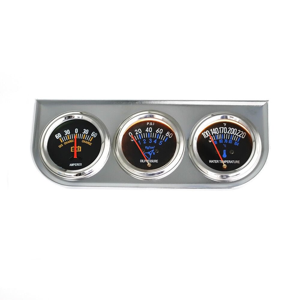 Mechanical 2” 52mm Chrome Triple Gauge Set Water Temp Oil Pressure AMP Meter