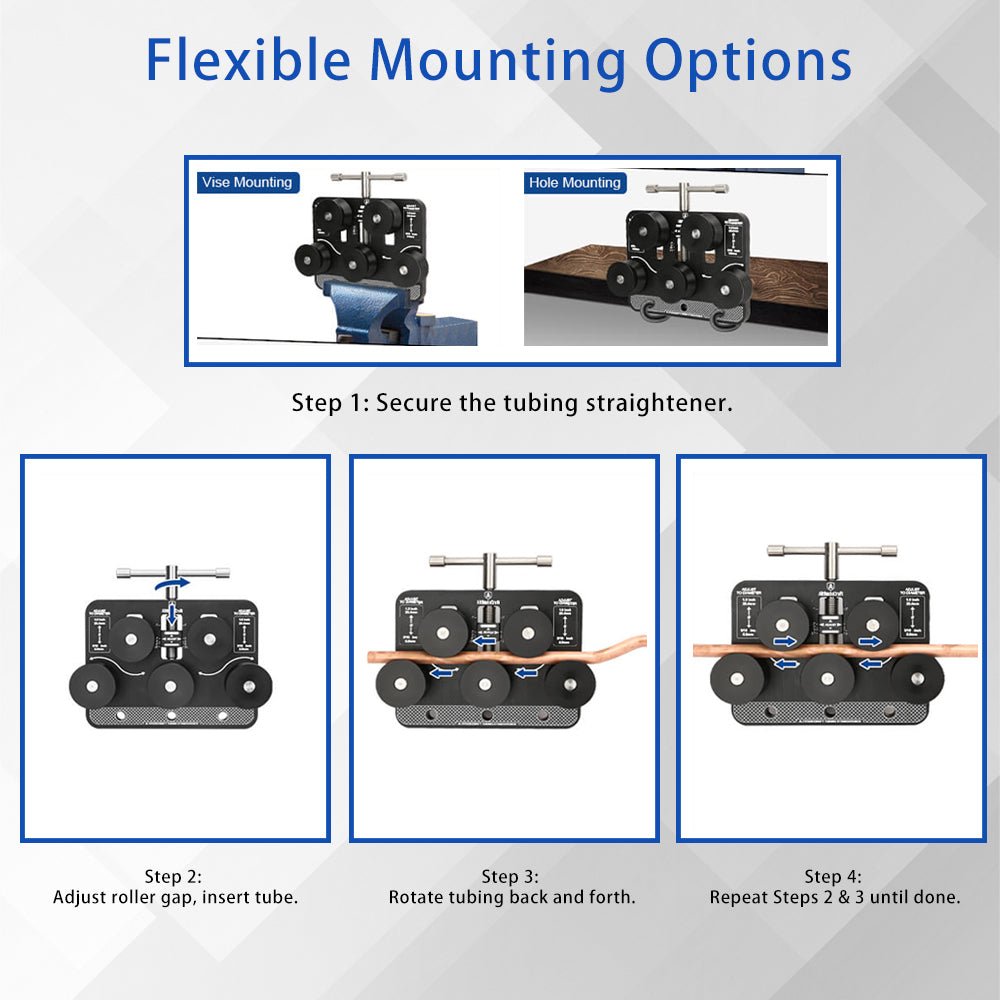 【Advanced Roller Technology】Equipped with dual precision bearings and durable acetal rollers. our tube straightener guarantees a smooth. damage-free straightening process for brake & fuel line tubing. preserving the integrity and longevity of your tubing.